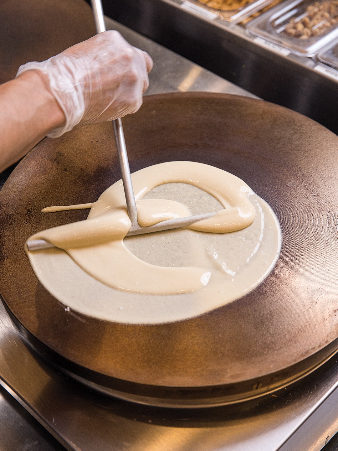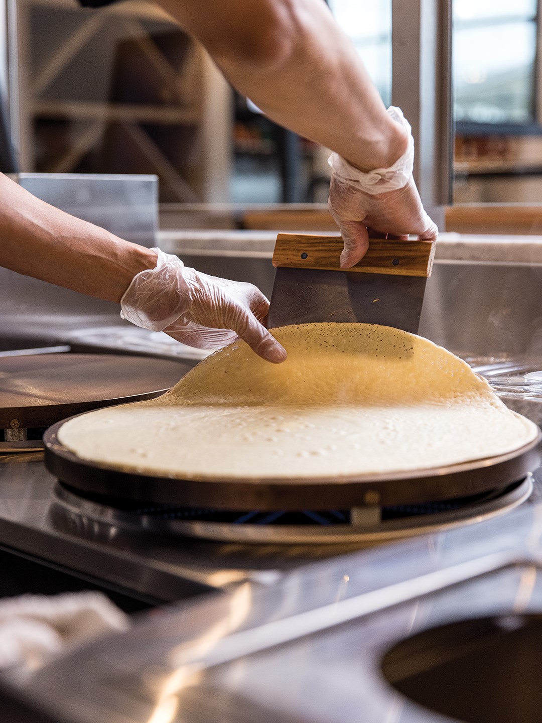 One menu item that’s exclusive (so far) to the Woodbury café is (aptly) the Minnesota Crêpe, inspired by traditional ingredients and flavors of a hearty Upper Midwest breakfast. “It includes scrambled eggs, bacon, sausage, potatoes and a little bit of fresh jalapeños,” Landero says. “That’s one of the favorites.”