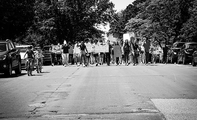 On June 4, Woodbury families, kids and teenagers marched from Colby Lake Park to Woodbury City Hall to honor George Floyd. The memorial, which aligned with the Minneapolis memorial, included a eulogy for George Floyd, a moment of silence, a community vigil and remarks from Woodbury mayor Anne Burt. The following day, June 5, high school students organized a march and supply drive at Ojibway Park. The photos below showcase both events.