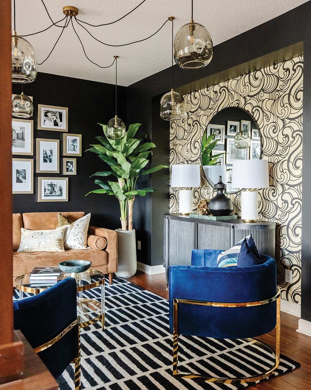 Crane wallpaper, a royal blue sofa and black walls are all part of a Woodbury home makeover that has the homeowners absolutely in awe.